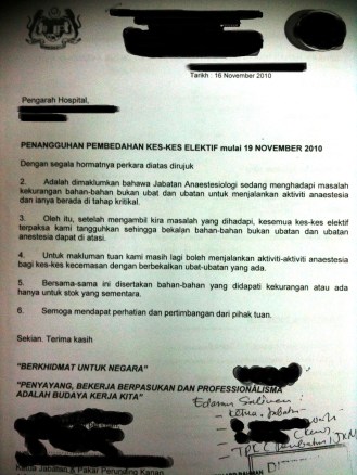Well, the situation down here is getting rather critical. I just received another info from a friend of mine that ALL elective surgeries for this particular hospital has to be cancelled and postponed due to lack of medications and consumables!! WTH !! And mind you, this is one of the biggest hospital in Malaysia and supposedly a major referral centre for a big state in Peninsular Malaysia. Other then the inability of doing a lot of important blood test, the angiogram machine is also down for the last 1-2 months!